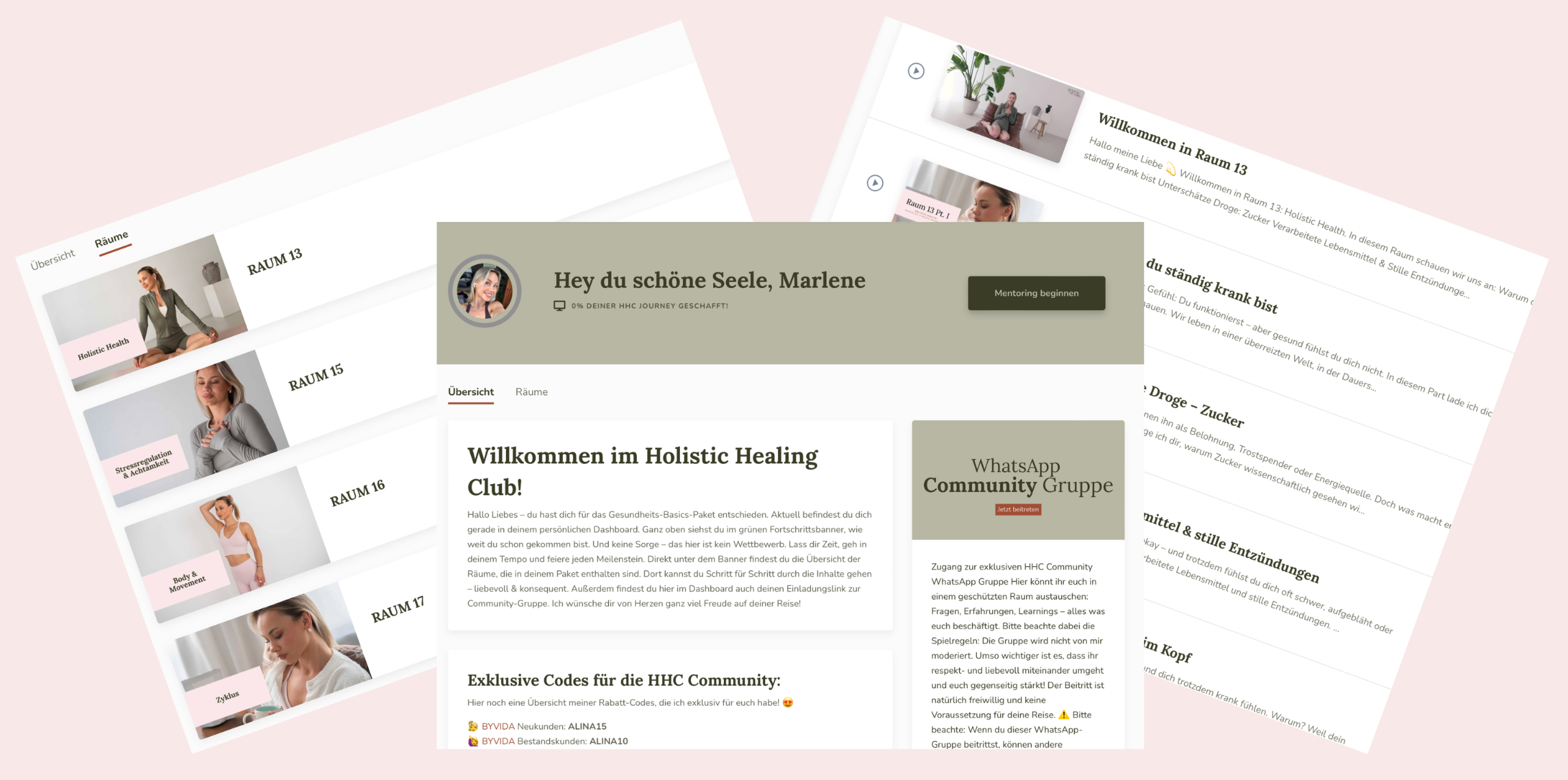 Ich freue mich riesig, den Holistic Healing Club bei den Themen rund um Gesundheit, Ernährung und Bewegung zu unterstützen – weil ich es einfach großartig finde, was Alina hier geschaffen hat: einen Raum, in dem Frauen sich verstanden fühlen, Heilung erleben und wirklich etwas für sich verändern können. Auf meiner eigenen Healing Journey habe ich in den letzten sechs Jahren unglaublich viel über Gesundheit, Ernährung, Bewegung und die positiven Effekte eines aktiven Lebensstils gelernt – durch unzählige Recherchen, Bücher, Gespräche und auch durch Therapie. Ich habe mein Leben Stück für Stück umgekrempelt und kann heute voller Dankbarkeit sagen: Ich bin wirklich glücklich, gesund und fühle mich in meinem Körper wohl! Jeden Tag stehe ich gerne auf – und genau dieses Gefühl möchte ich so vielen Frauen wie möglich weitergeben.
